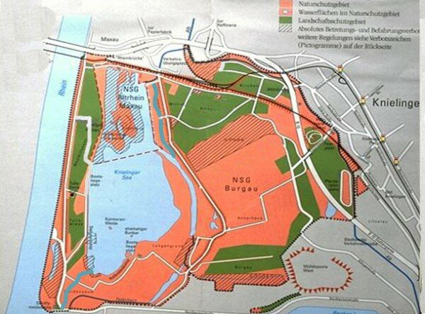 Die Burgau liegt am Rhein. Das Gelände wurde 1989 weitgehend unter Naturschutz gestellt. Der Naturraum wird umringt von Landschaftsschutzgebieten. Die Unterschiede liegen schon im Namen. Mit der Verwendung des Wortes Natur wird diese mit unterschiedlichsten Zielen geschützt. Vereinfacht geht es um den Erhalt der Artenvielfalt und ihrer Lebensräume. Der Landschaftsschutz dient der Bewahrung der Eigenarten eines Gebietes z.B. für die Erholung der Anwohner.